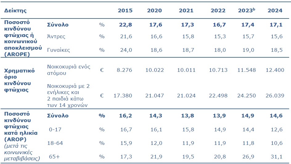 17,1% του πληθυσμού ή 164 χιλιάδες άτομα βρίσκονταν το 2024 σε κίνδυνο φτώχειας ή σε κοινωνικό αποκλεισμό.