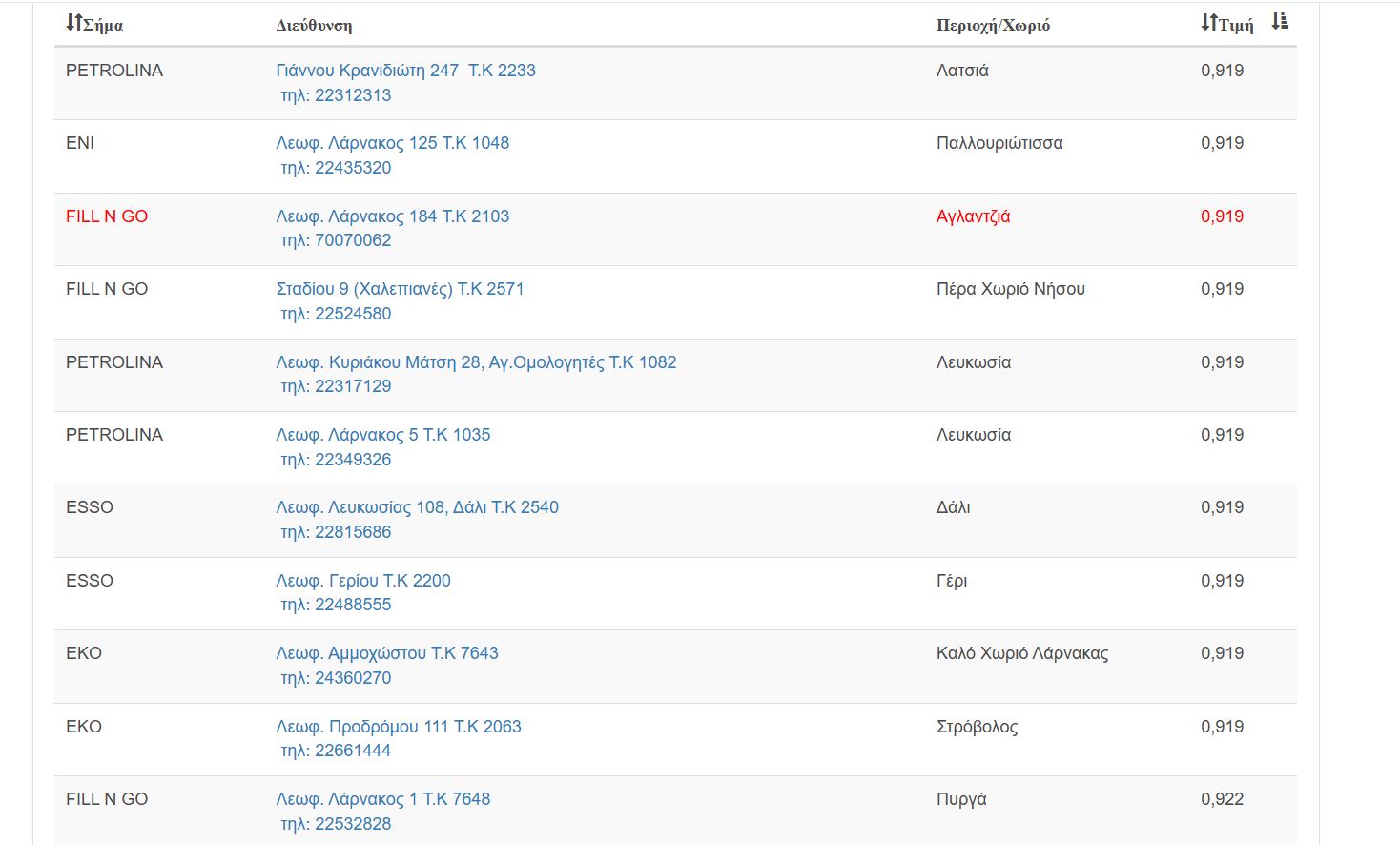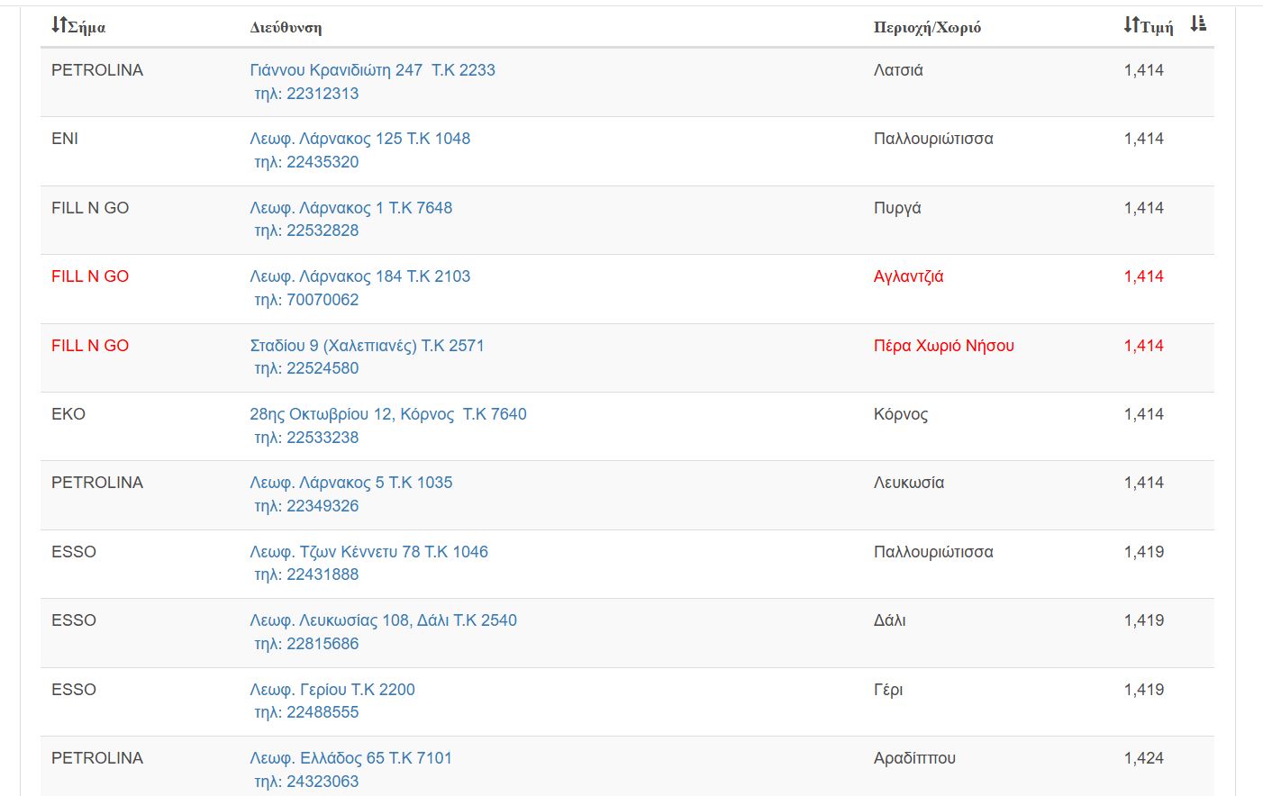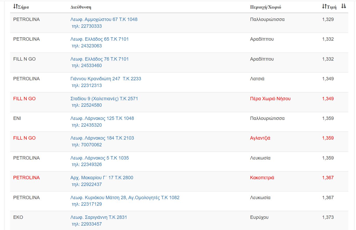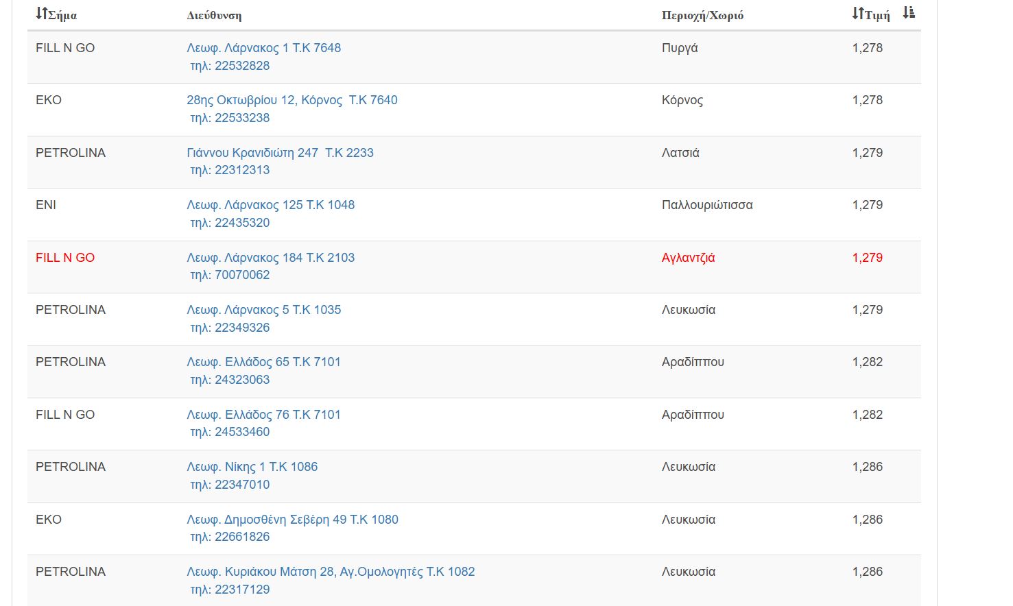 Δείτε αναλυτικά τις τιμές σε όλα τα πρατήρια της Κύπρου ΕΔΩ