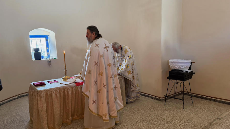 Τη λειτουργία τέλεσαν ο πάτερ Κωνσταντίνος της ενορίας του Αγίου Στυλιανού στις Άσπρες Στροβόλου και ο πάτερ Γεώργιος της ενορίας του Αποστόλου Βαρνάβα στην Κοκκκινοτριθιά, τη μητροπολιτική έδρα του Πανιερωτάτου Μητροπολίτη Κερύνειας Χρυστοστόμου.