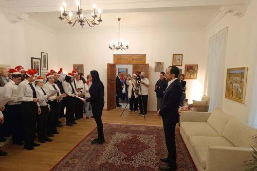 Μαθητές από το Ειδικό Σχολείο Ευαγγελισμός, το Α' Δημοτικό Σχολείο Μακεδονίτισσας και το Δ' Δημόσιο Νηπιαγωγείο Αγλαντζιάς επισκέφθηκαν επίσης το Προεδρικό Μέγαρο, για να ερμηνεύσουν χριστουγεννιάτικα τραγούδια ενώπιον του Προέδρου Χριστοδουλίδη, ο οποίος συνομίλησε και αντάλλαξε ευχές με τα παιδιά.
