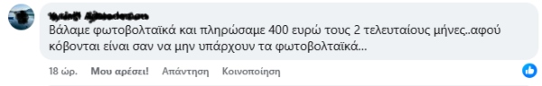 Αρκετοί πολίτες έχουν εκφράσει επίσης την απορία, για ποιο λόγο οι αρμόδιοι τους ώθησαν να επενδύσουν στην εγκατάσταση φωτοβολταϊκών από τη στιγμή που δεν μπορούν να υποστηρίξουν τη λειτουργία τους, με αποτέλεσμα να μην μειώνεται ο λογαριασμός τους στο επίπεδο που είχε αρχικά υπολογιστεί.