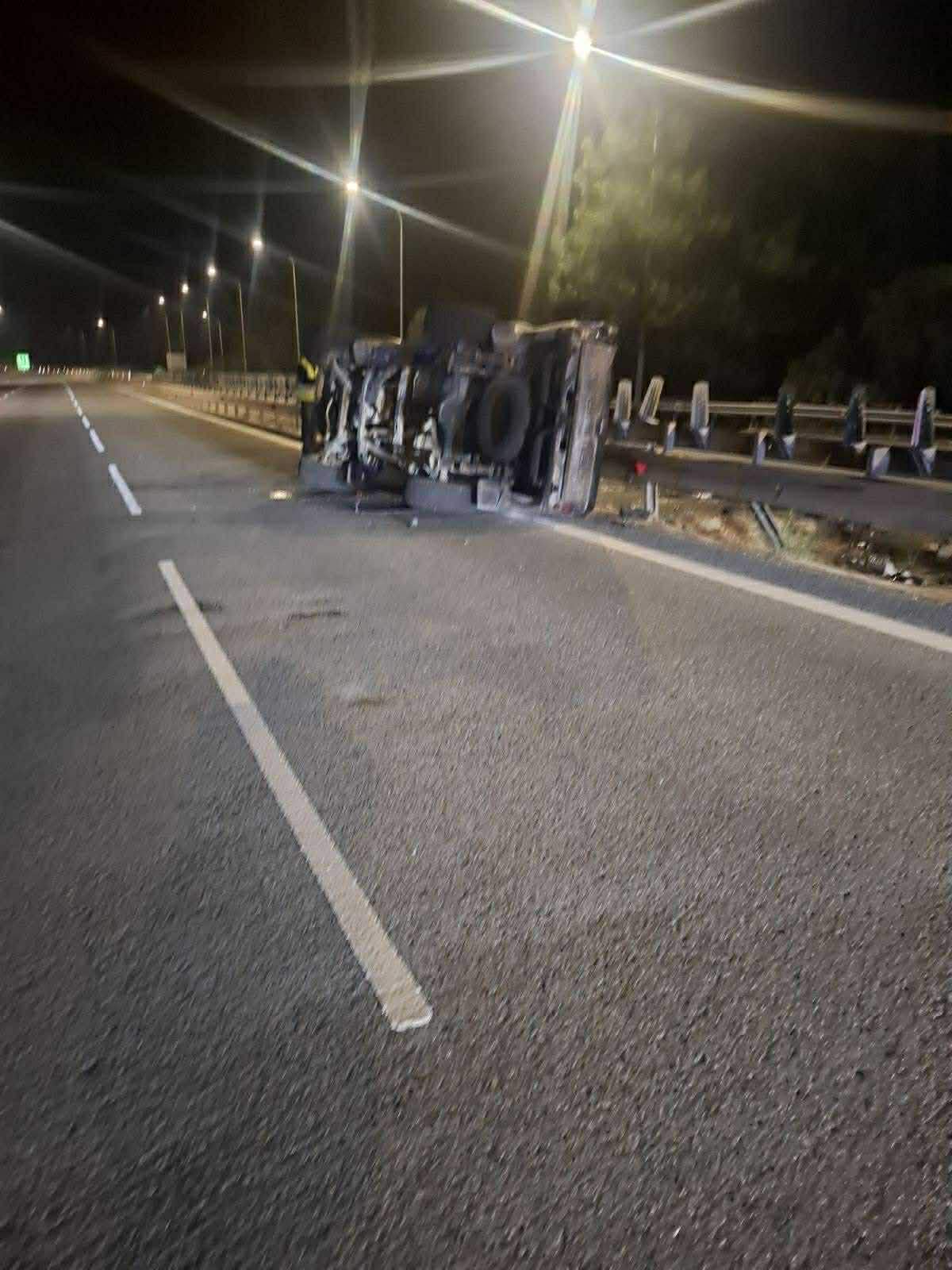 Σύμφωνα με την Αστυνομία, το αυτοκίνητο κτύπησε μόνο του στο εσωτερικό διαχωριστικό κιγκλίδωμα και στη συνέχεια ανατράπηκε.