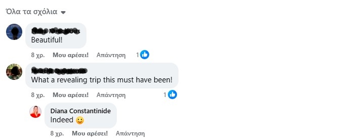 Μια άλλη λεπτομέρεια που δεν περνά απαρατήρητη είναι πως η Νταϊάνα Κωνσταντινίδη πάτησε «like» σε όλα τα σχόλια χρηστών στην υπό αναφορά ανάρτησή της, τα οποία ταυτίζονταν με τη χαρά της ή και με τις απόψεις που διατύπωσε, με μία εξαίρεση.
