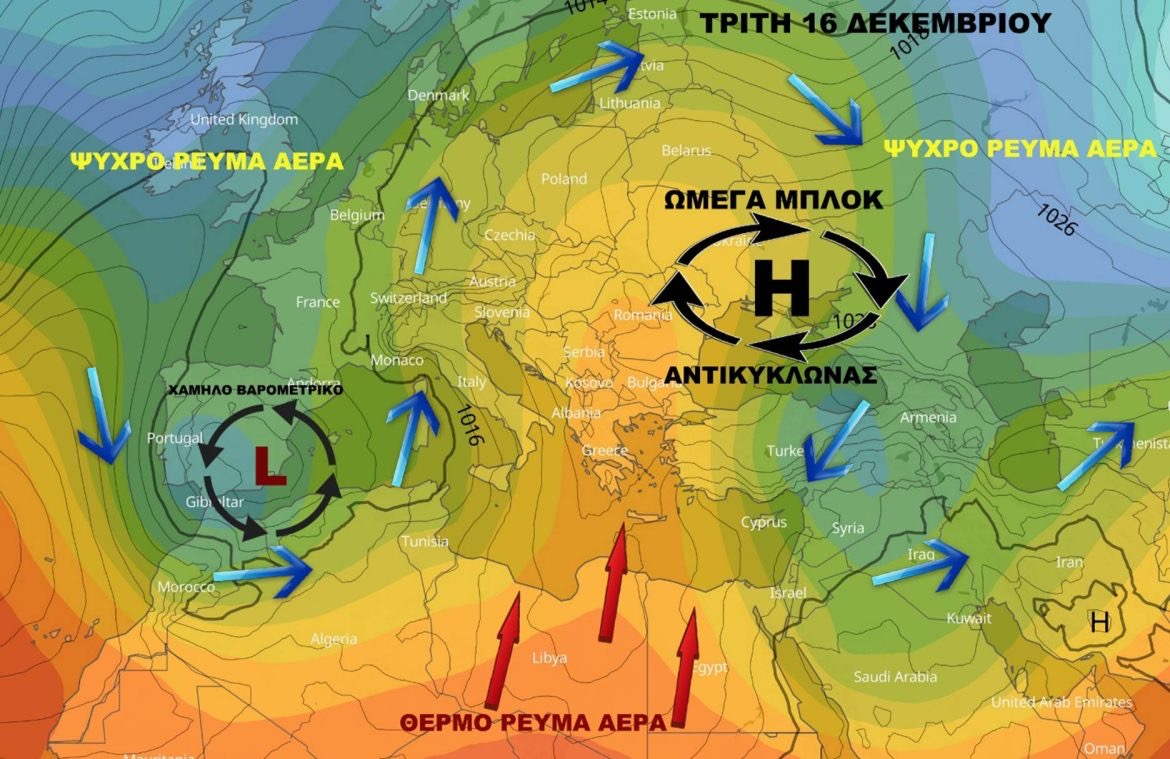 "Στον ψυχρό τομέα του Ωμέγα Μπλοκ μέχρι Τετάρτη-Από Πέμπτη ελαφρώς θερμό ρεύμα αέρα και άνοδος θερμοκρασίας-Πιθανότητα βροχών επόμενη εβδομάδα με πτώση θερμοκρασίας"
