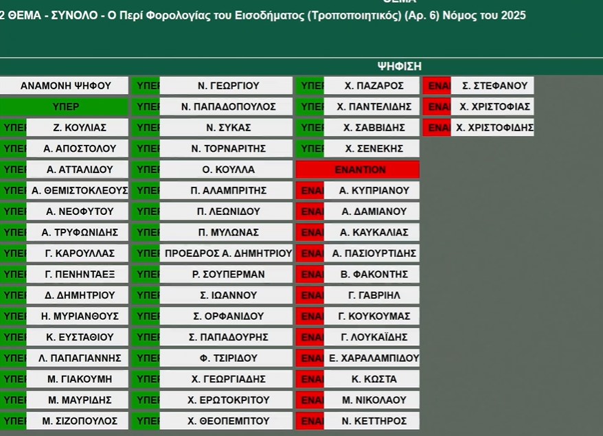 Με την ψήφιση των πέντε νομοσχεδίων, η Βουλή άναψε το πράσινο φως για μια εκτεταμένη αναδιάρθρωση του φορολογικού πλαισίου από 1η Ιανουαρίου 2026.