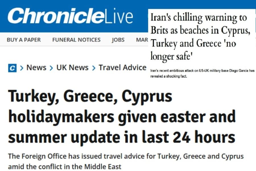 Ενδεικτικά, η express.co.uk σε δημοσίευμά της (21/3/2026) επέλεξε τον εξής τίτλο: «Η ανησυχητική προειδοποίηση του Ιράν προς τους Βρετανούς: Οι παραλίες σε Κύπρο, Τουρκία και Ελλάδα δεν είναι πλέον ασφαλείς». Στο κείμενο του δημοσιεύματος όμως δεν υπάρχει λέξη που να αναφέρεται σε συγκεκριμένη απειλή από πλευράς Ιράν, ονομαστικά εναντίον οποιουδήποτε κράτους.