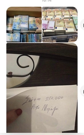 Στη τελευταία του ανάρτησή του o Δρουσιώτης δημοσίευσε και μία φωτογραφία που παρουσιάζει γυναικείο χέρι με χειρόγραφη σημείωση που αναγράφει "Σάντη 250.000 Από Μιχάλη".