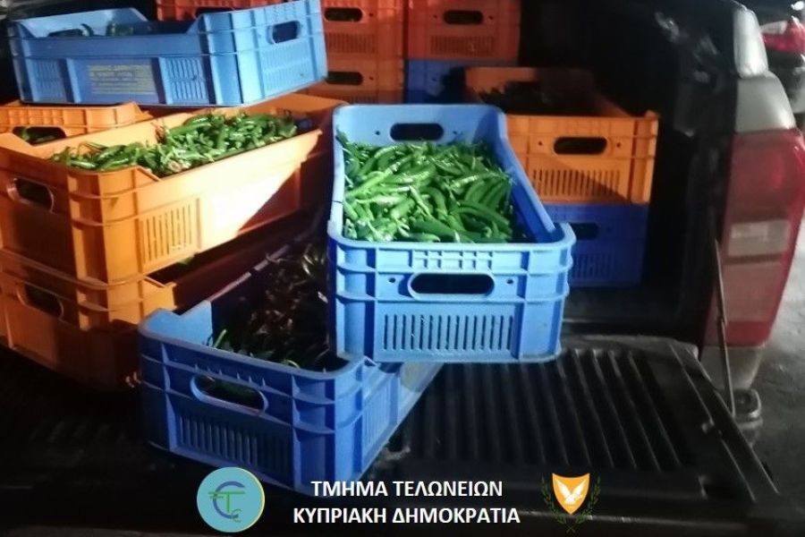 Οι λειτουργοί του Τμήματος Τελωνείων που ανέλαβαν την υπόθεση διαπίστωσαν ότι στο εν λόγω όχημα μεταφέρονταν 100 κιλά πράσινων πιπεριών με άγνωστη προέλευση, τα οποία κατάσχεσαν για διπλή παράβαση του Κανονισμού της Πράσινης Γραμμής (διάβαση από μη εγκεκριμένο σημείο διέλευσης και μεταφορά εμπορευμάτων χωρίς τις απαιτούμενες διατυπώσεις). Κατασχέθηκε επίσης το όχημα ως το μέσο μεταφοράς των εμπορευμάτων.