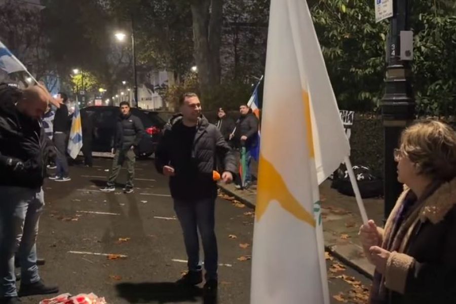 Μια ιδιαίτερα συμβολική και φορτισμένη στιγμή καταγράφηκε έξω από την τουρκική πρεσβεία στο Λονδίνο, όταν ένας Τουρκοκύπριος έκαψε τη σημαία του ψευδοκράτους, δηλώνοντας πως δεν τον εκπροσωπεί. Τόνισε ότι η σημαία αυτή συμβολίζει για εκείνον «την κατοχή και την αποικιοκρατία των εποίκων», στέλνοντας μήνυμα διαμαρτυρίας και πολιτικής αντίστασης.