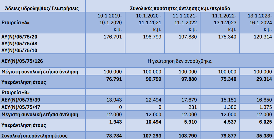 Δύο εταιρείες υπεραντλούν νερό ανενόχλητες