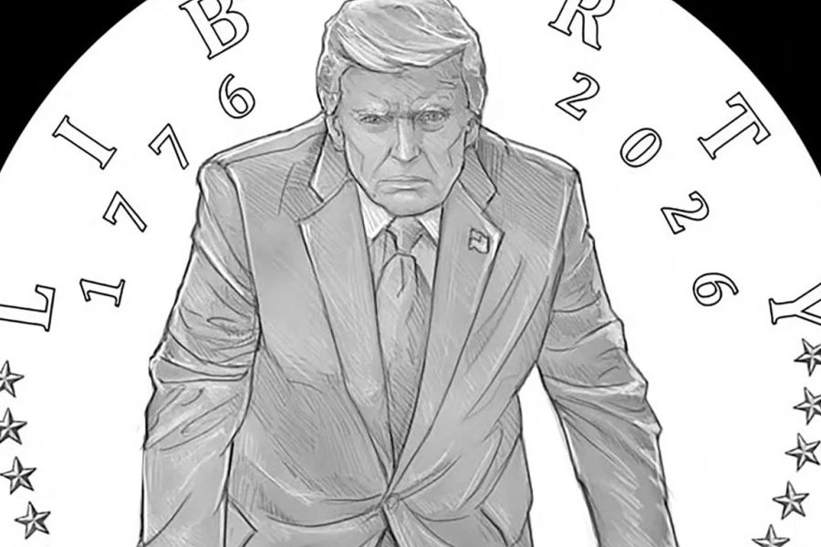 Το χρυσό νόμισμα 24 καρατίων προορίζεται να σηματοδοτήσει τα 250ά γενέθλια της Αμερικής στις 4 Ιουλίου και απεικονίζει τον Τραμπ σε πόζα «σκληρού άνδρα», με τις γροθιές του να πιέζουν αυτό που φαίνεται να είναι το γραφείο Resolute. Βασίζεται σε φωτογραφία του επικεφαλής φωτογράφου του Λευκού Οίκου επί Τραμπ.