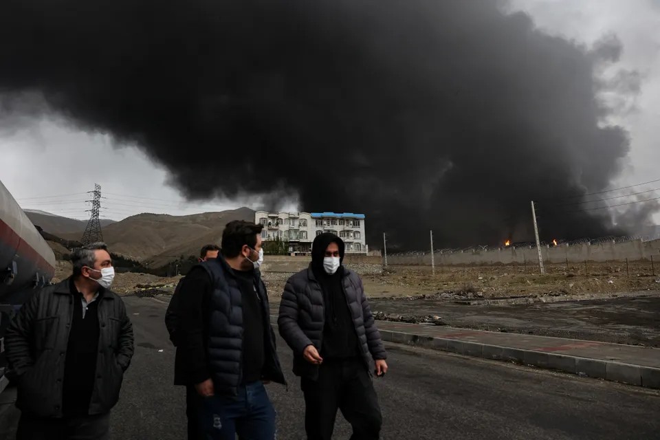 Πυκνός, αποπνικτικός μαύρος καπνός πάνω από την Τεχεράνη μετά τις επιθέσεις σε εγκαταστάσεις αποθήκευσης πετρελαίου που φώτισαν τον νυχτερινό ουρανό με πορτοκαλί φλόγες. Ο εκπρόσωπος του Υπουργείου Εξωτερικών του Ιράν, Εσμαΐλ Μπαγκάεϊ, δήλωσε ότι η μεγάλης κλίμακας επίθεση σηματοδότησε μια «επικίνδυνη νέα φάση» της σύγκρουσης και ισοδυναμεί με έγκλημα πολέμου. «Στοχοποιώντας αποθήκες καυσίμων, οι επιτιθέμενοι απελευθερώνουν επικίνδυνα υλικά και τοξικές ουσίες στον αέρα – δηλητηριάζοντας αμάχους, καταστρέφοντας το περιβάλλον και θέτοντας σε κίνδυνο ζωές σε τεράστια κλίμακα», έγραψε ο Baghaei στο X.