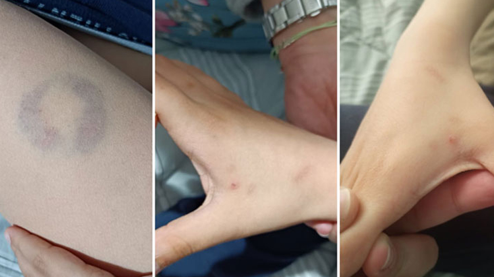 Η μητέρα του, με δάκρυα στα μάτια εξιστόρησε τι ακριβώς συνέβη. «Την περασμένη Τρίτη, όταν πήγα να πάρω το παιδί μου από το σχολείο, είδα με έκπληξη ότι έφερε γρατσουνιές πίσω από το δεξί αυτί του και στους καρπούς των χεριών του. Ρώτησα τη δασκάλα του γιου μου τί συνέβη, καθώς το παιδί μου όταν έφυγε το πρωί από το σπίτι μας δεν έφερε κάποιο τραύμα. Η ίδια μου απάντησε ότι τα συγκεκριμένα τραύματα προκλήθηκαν από την προσπάθεια που έκανε η Διευθύντρια και δασκάλα του σχολείου να απομακρύνει από κοντά της το παιδί μου, το οποίο της είχε πιάσει τα μαλλιά. Η έκπληξή μου συνεχίστηκε όταν έφτασα σπίτι μας και άλλαξα ρούχα στο γιο μου, και πήγα να τον κάνω μπάνιο, όπου εκεί, κατεβάζοντας τη φόρμα του, είδα μια τεράστια μελανιά – δαγκωματιά στο μέσο του ποδιού του, μάλιστα πρόκειται για μια μελανιά όπου φαίνονται ίχνη δοντιών. Αυτό με έκανε αμέσως να καταλάβω ότι κάποιος δάγκωσε το γιο μου δυνατά στο σημείο αυτό.