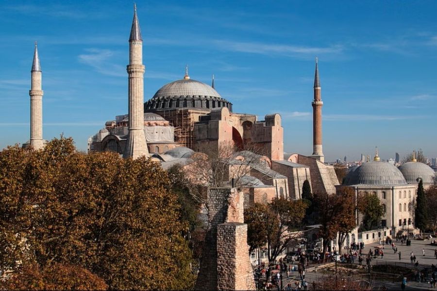 Ελληνική σημαία με σταυρό στη μέση ξετύλιξαν εντός του ναού της Αγίας Σοφίας στην Κωνσταντινούπολη, τη Μεγάλη Πέμπτη 9 Απριλίου, δύο άτομα, ηλικίας 42 και 35 χρονών.