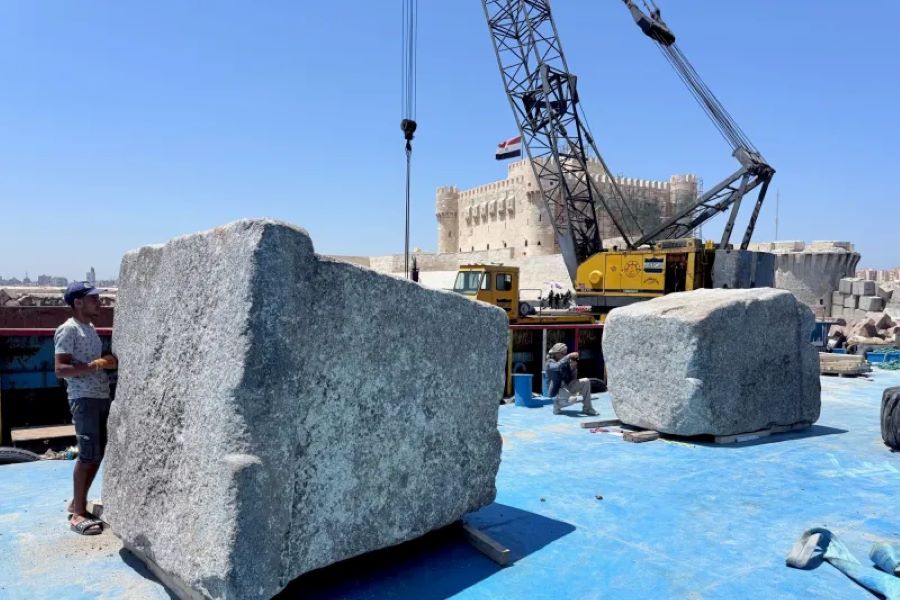 Σε μια τεράστια επιχείρηση στο Ανατολικό Λιμάνι της Αλεξάνδρειας, που ξεκίνησε από τον Ιούνιο του 2015, οι ερευνητές ανέσυραν τελικά 22 ογκόλιθους από γρανίτη και ασβεστόλιθο, βάρους έως και 80 τόνων, φέρνοντας ξανά στο φως για πρώτη φορά μετά από αιώνες, ένα καθοριστικό τμήμα του φάρου.