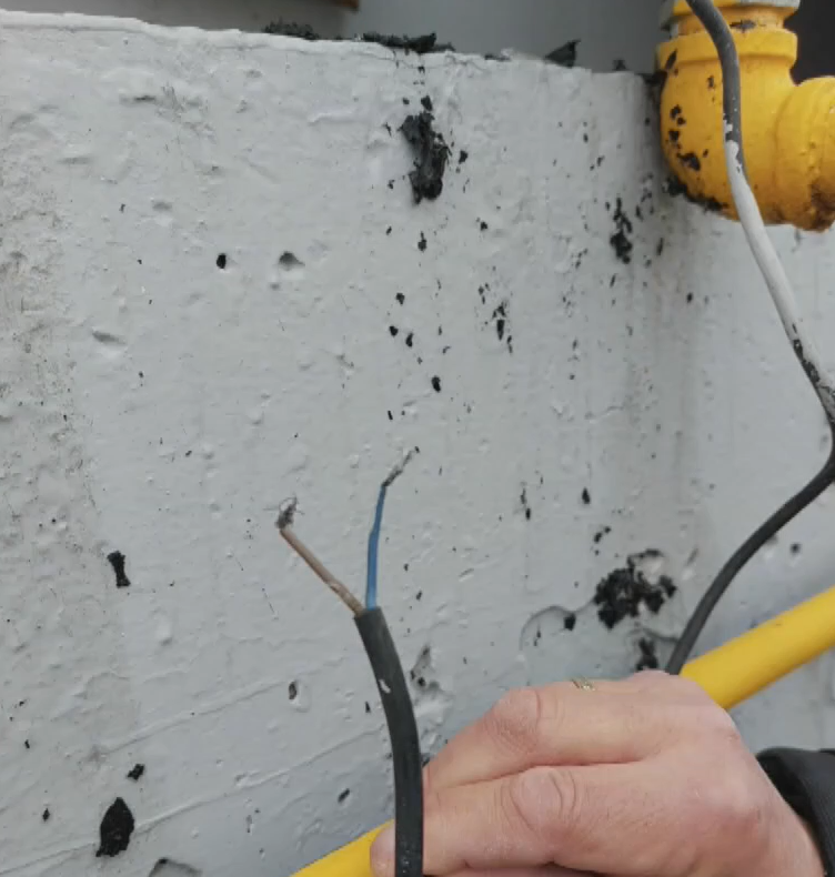 Δίπλα στο μπλε καλώδιο της ηλεκτρικής παροχής εντοπίζεται σωλήνας που είναι κατεστραμμένος από την οξείδωση. Όταν αυτός αποκαλύφθηκε στο σκάμμα, η έντονη μυρωδιά αερίου από τα σημεία διαφυγής κατέκλυσε τον χώρο.