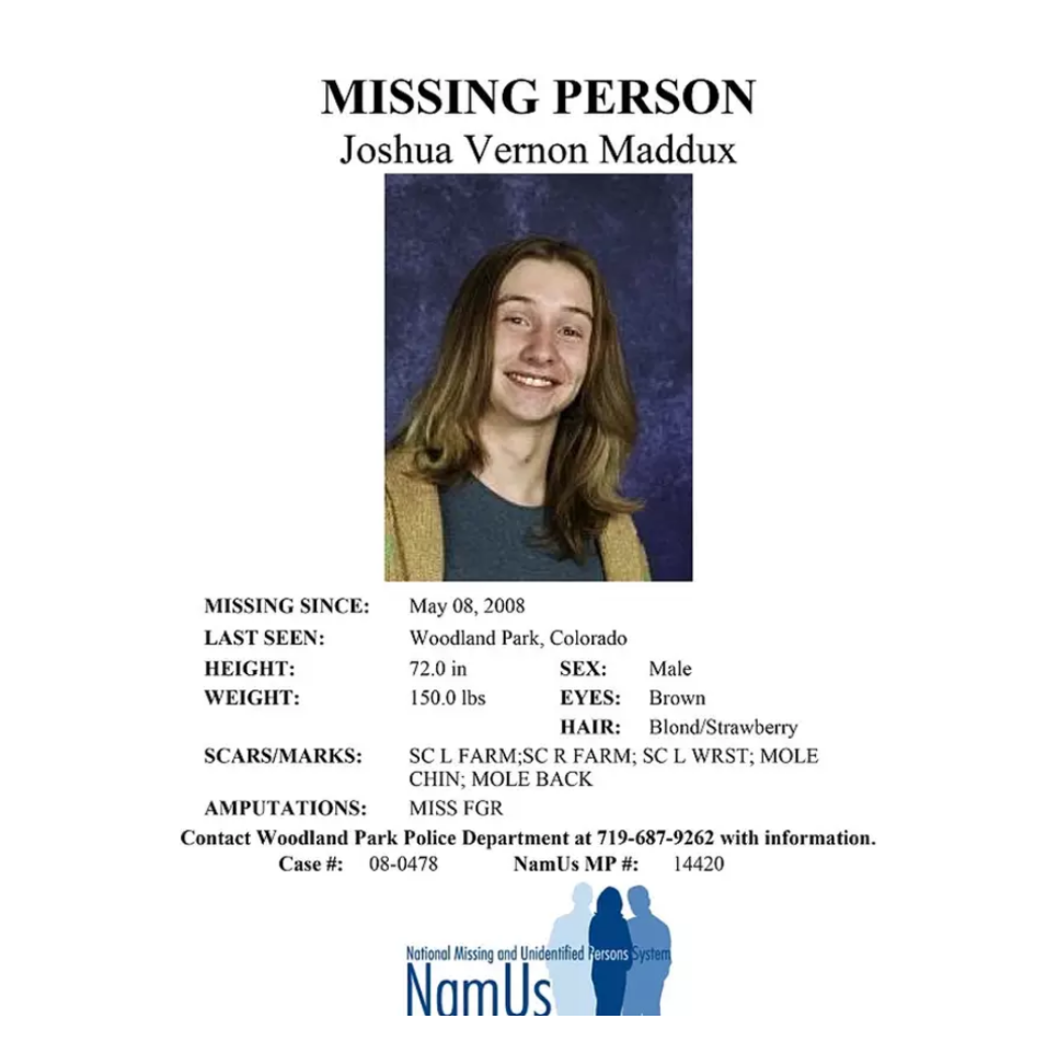 Ο Τζόσουα Μάνταξ έφυγε από το σπίτι της οικογένειάς του στο Γούντλαντ Παρκ της κομητείας Τέλερ, στο Κολοράντο, τον Μάιο του 2008 για έναν σύντομο περίπατο. Όταν δεν επέστρεψε, οι γονείς του δήλωσαν την εξαφάνισή του, ενώ τα χρόνια που ακολούθησαν η οικογένεια κρατούσε την ελπίδα ότι ίσως είχε αποφασίσει να φύγει από την πόλη και να ξεκινήσει μια νέα ζωή, όπως έγραψε αργότερα η αδελφή του, Κέιτ, στην ιστοσελίδα News of Woodland Park.