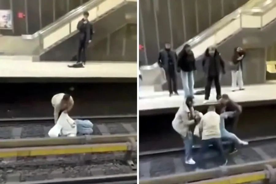 Περαστικοί αντέδρασαν άμεσα, με έναν εξ αυτών να κατεβαίνει για να τον βοηθήσει, ωστόσο ο άνδρας που ήταν ξαπλωμένος αρνήθηκε να σηκωθεί, ενώ άλλοι ειδοποιούσαν τον οδηγό του μετρό με σήματα και φωνές. Το μετρό κατάφερε να φρενάρει εγκαίρως και αμέσως κατέβηκαν στις ράγες και άλλοι δύο άνθρωποι για να βοηθήσουν τον πρώτο που είχε ήδη κατέβει, σηκώνοντας τον άνδρα κυριολεκτικά με το ζόρι για να τον τοποθετήσουν με ασφάλεια στην αποβάθρα.