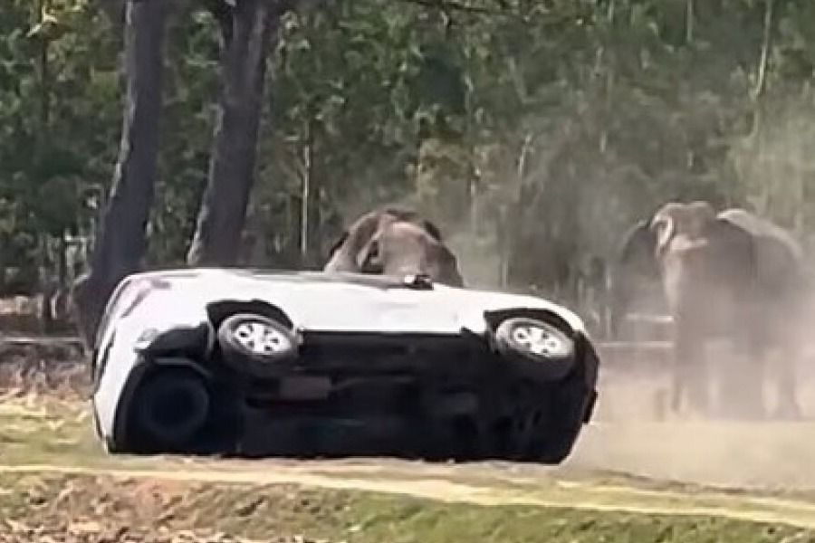 Σκηνές χάους από τη βίαιη αντίδραση του ελέφαντα