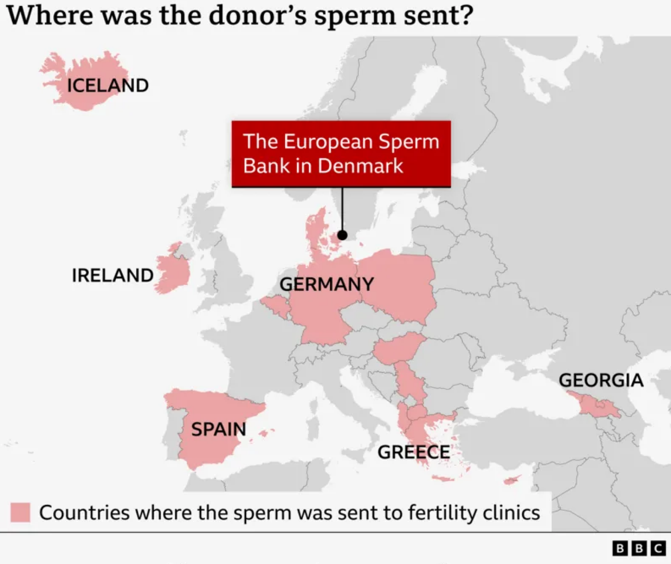Η Ευρωπαϊκή Τράπεζα Σπέρματος στη Δανία, η οποία και πωλούσε το σπέρμα του εν λόγω άντρα, παραδέχτηκε ότι αυτό χρησιμοποιήθηκε για τη γέννηση πάρα πολλών παιδιών σε κάποιες χώρες, ανάμεσα στις οποίες και η Ελλάδα, όπως φαίνεται στον παρακάτω χάρτη του BBC: