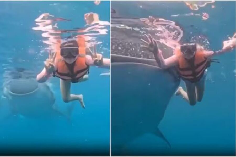 Μία απρόβλεπτη και τρομακτική - για τους περισσότερους - συνάντηση είχε μία κολυμβήτρια στις Φιλιππίνες, όταν στη διάρκεια υποβρύχιας φωτογράφισης, ένας φαλαινοκαρχαρίας, την πλησίασε αθόρυβα και την την άγγιξε ελαφρά στο χέρι.