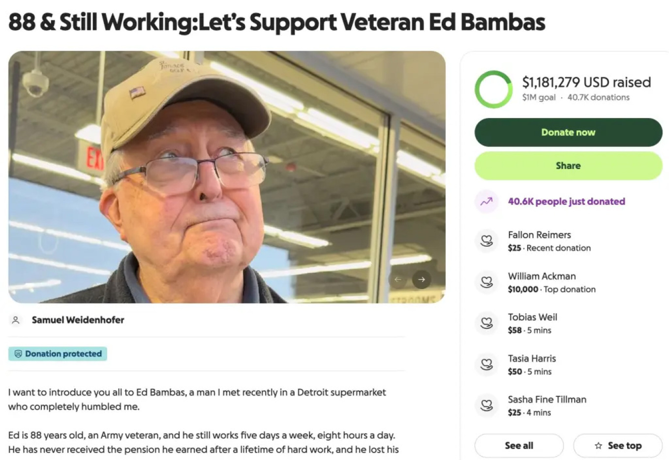Η συγκινητική ιστορία ενός 88χρονου βετεράνου που έχασε τη σύνταξή του και ένας influencer του συγκέντρωσε πάνω από $1 εκατ. για να σταματήσει να εργάζεται