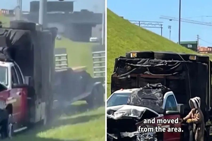 A truck carrying approximately 1 million bees crashed off an off-ramp in Tennessee, allowing the insects to escape. The bees were eventually rounded up and moved from the area by beekeepers. pic.twitter.com/X4x9dEHONq