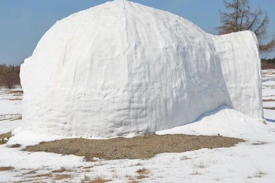 Αρχικά χρησιμοποίησαν ένα κουτί για να συμπιέσουν το χιόνι, μετατρέποντάς το σε τούβλα. Στοιβάζοντας τα παγωμένα τούβλα, κατάφεραν να δημιουργήσουν, σιγά-σιγά, μια δομή που γινόταν όλο και μεγαλύτερη.