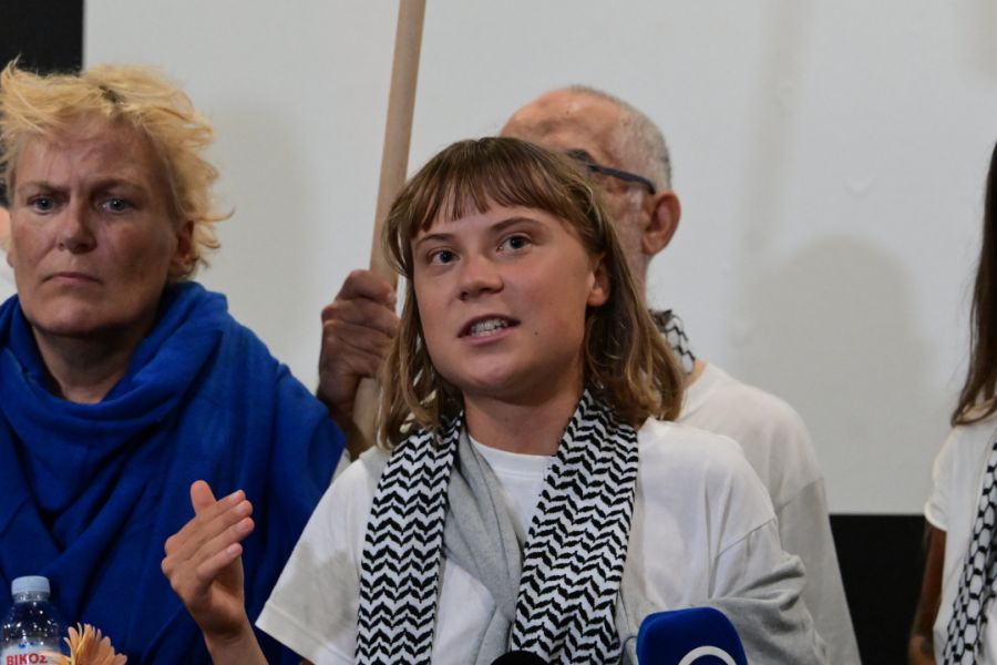 Η Τούνμπεργκ συμμετείχε μαζί με εκατοντάδες ακτιβιστές στον στόλο Global Sumud Flotilla , που αναχαιτίστηκε από το ισραηλινό ναυτικό, κατά την προσπάθεια να σπάσει τον θαλάσσιο αποκλεισμό της Γάζας. Οι συμμετέχοντες οδηγήθηκαν στο Ασντόντ και στη συνέχεια απελάθηκαν, ενώ η Σουηδή είχε λάβει μέρος και σε αντίστοιχη προσπάθεια τον Ιούνιο με το σκάφος Madleen.