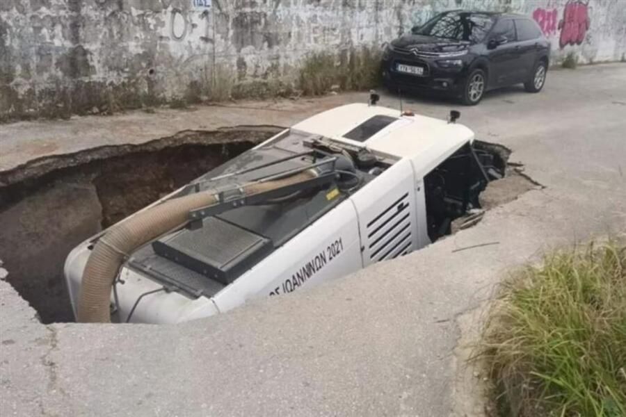 Μία τρύπα που χόρεσε ολόκληρο όχημα του δήμου Ιωαννιτών άνοιξε στα Ιωάννινα χωρίς ευτυχώς να τραυματιστεί ο οδηγός.