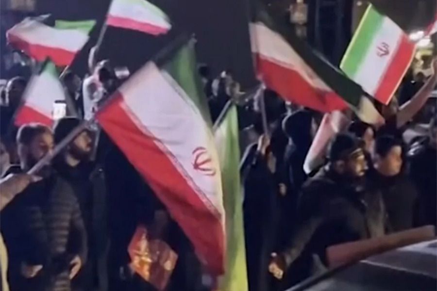 Το πλήθος συγκεντρώθηκε στην πλατεία Ενγκελάμπ στην Τεχεράνη κρατώντας ιρανικές σημαίες και πορτρέτα του Μοζτάμπα Χαμενεΐ, γιου του Αλί Χαμενεΐ, ο οποίος κατείχε προηγουμένως τη θέση αυτή και σκοτώθηκε την πρώτη ημέρα των αμερικανοϊσραηλινών πληγμάτων εναντίον του Ιράν.