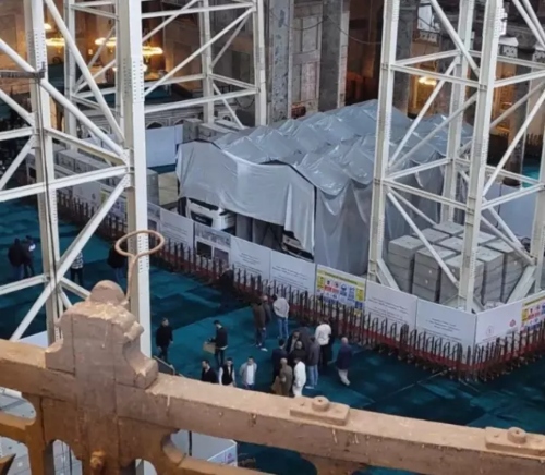 Η τουρκική Haberler.com αναφέρει σε δημοσίευμα για την Αγιά Σοφιά: «Προβεβλημένη ως μία από τις σπανιότερες πολιτιστικές κληρονομιές στον κόσμο και έχοντας επιβιώσει από αμέτρητες αντιξοότητες για 1500 χρόνια, οι εργασίες αποκατάστασης στην Αγία Σοφία έχουν πυροδοτήσει μια νέα συζήτηση. Η είσοδος δύο γερανών, βάρους 45 τόνων ο καθένας, στην Αγία Σοφία κατά τη διάρκεια της αναστήλωσης έχει προκαλέσει ένταση στις συζητήσεις.