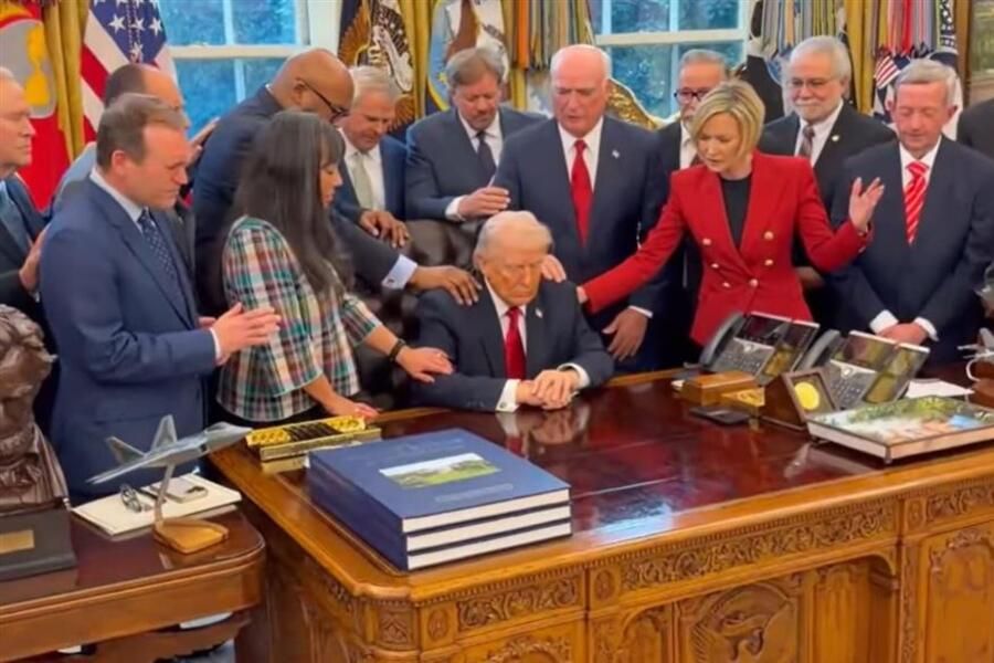 Μαζεύτηκαν, λοιπόν, στον Λευκό Οίκο και γύρω από το Οβάλ γραφείο, έπιασαν όλοι μαζί τα χέρια και παρέα με τον Ντόναλντ Τραμπ, προσευχήθηκαν να πάνε καλά οι αμερικανικές επιχειρήσεις στο Ιράν. Με τον πρόεδρο των ΗΠΑ μάλιστα να το ζει και να κατακλύζεται από συναίσθημα, όπως μαρτυρούν τα κλειστά του μάτια...
