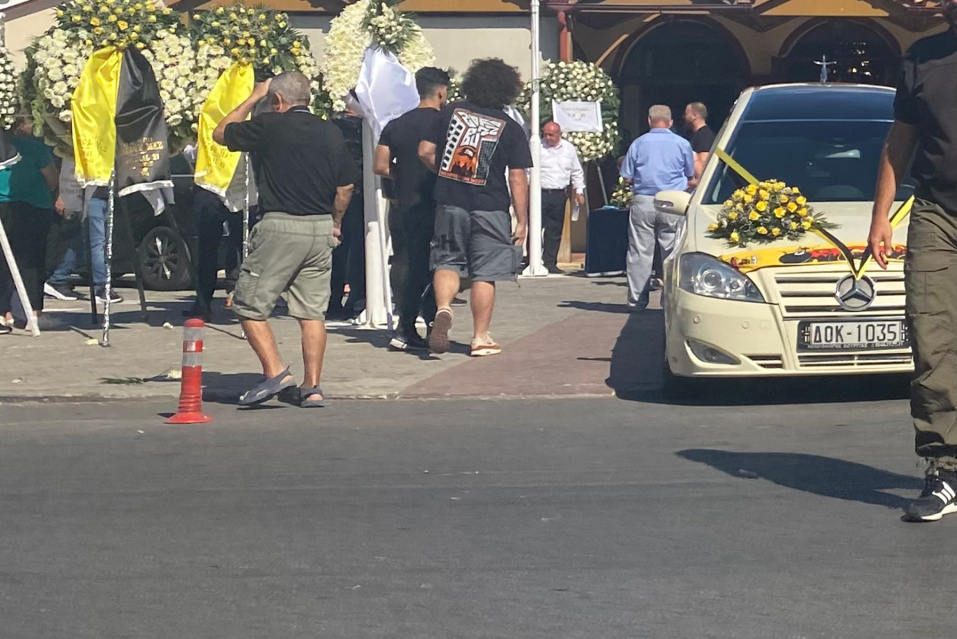 Η εξόδιος ακολουθία έγινε στον ιερό ναό Αγίου Κωνσταντίνου, παρουσία συγγενών, φίλων αλλά και εκπροσώπων της ΑΕΚ που κρατούσαν κίτρινα τριαντάφυλλα. Το «παρών» έδωσε ο προπονητής της ομάδας, Ματίας Αλμέιδα, εκ μέρους των ποδοσφαιριστών ο Σέρχιο Αραούχο και ο Πέτρος Μάνταλος και επίσης ο πρόεδρος της ΠΑΕ Βαγγέλης Ασλανίδης, οι Τάσος Τσατάλης, Γιάννης Καραλής από τον τομέα επικοινωνίας, ο αθλητικός διευθυντής Μπρούνο Άλβες, ο τεχνικής διευθυντής Ράντοσλαβ Κουχάρσκι και ο μεταφραστής Πάνος Αναστασόπουλος