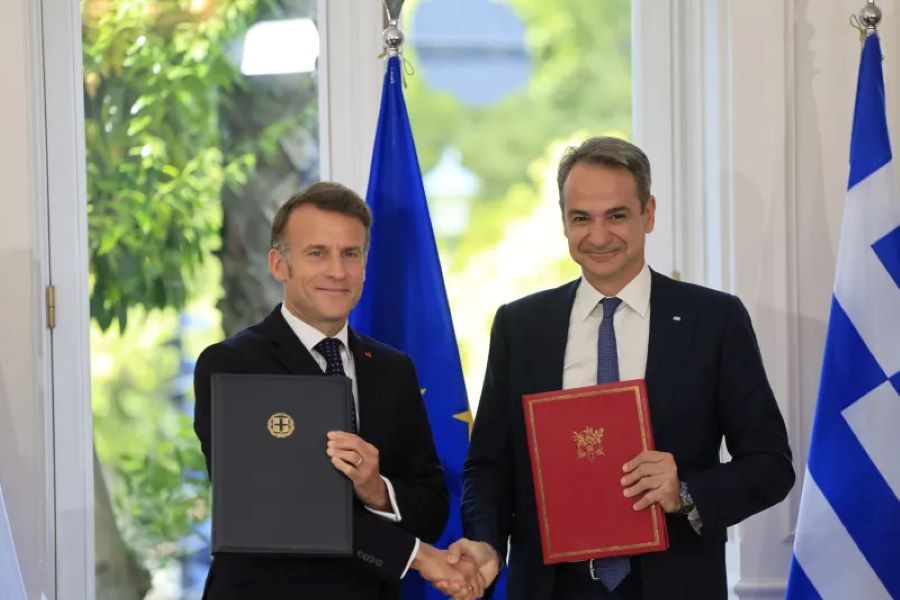 Νωρίτερα παρουσία του Έλληνα πρωθυπουργού Κυριάκου Μητσοτάκη και του Γάλλο προέδρου, Εμανουέλ Μακρόν, υπογράφηκαν εννέα συμφωνίες μεταξύ της ελληνικής και της γαλλικής αντιπροσωπείας για την επέκταση της αρχικής αμυντικής συμφωνίας που είχε υπογραφεί το 2021.