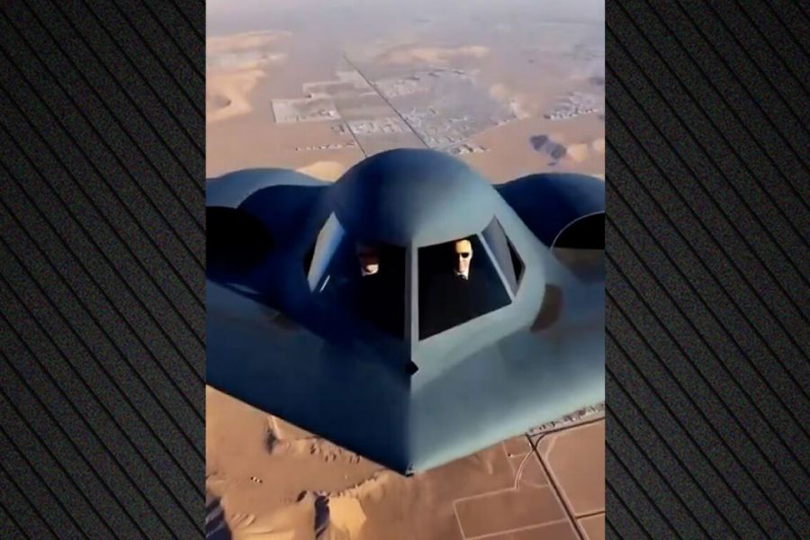 Ο Νετανιάχου «πιλοτάρει» ένα βομβαρδιστικό B-2, σαν και αυτά που χρησιμοποιήθηκαν στην επίθεση στις πυρηνικές εγκαταστάσεις του Ιράν, μαζί με τον Ντόναλντ Τραμπ. Φορούν και οι δύο μαύρα γυαλιά πιλότου, είναι... κοστουμαρισμένοι ενώ τους δροσίζει ένα αεράκι που -άγνωστο πώς- φυσά μέσα στο πιλοτήριο.