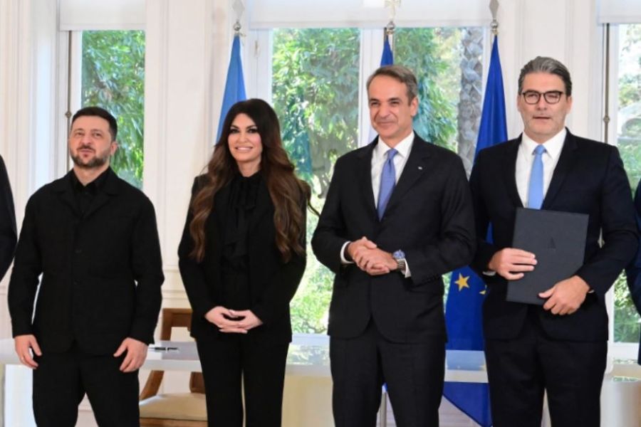 Η υπογραφή της συμφωνίας έγινε παρουσία του πρωθυπουργού Κυριάκου Μητσοτάκη, του πρόεδρου της Ουκρανίας Βολοντίμιρ Ζελένσκι και της Αμερικανίδας πρέσβη στην Ελλάδα, Κίμπερλι Γκιλφόιλ.