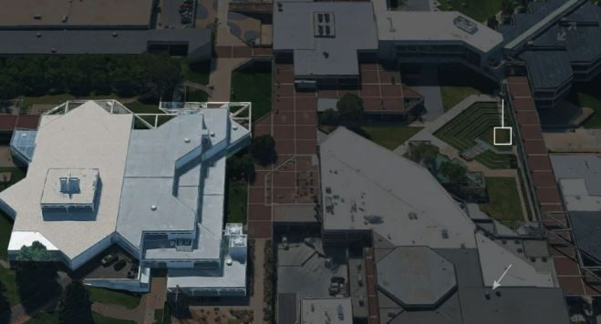 Όπως θα δείτε στην ακόλουθη φωτογραφία, στο κτίριο αριστερά βρισκόταν ο δράστης, ενώ ο Κερκ μιλούσε στον χώρο που δείχνει το λευκό βελάκι στα δεξιά.