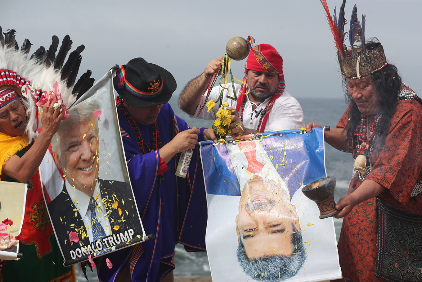 Σαμάνοι στο Περού συγκεντρώθηκαν χθες για το ετήσιο πρωτοχρονιάτικο τελετουργικό τους, όπου έκαναν προβλέψεις για το νέο έτος, στις οποίες περιλαμβάνεται ασθένεια για τον πρόεδρο των ΗΠΑ Ντόναλντ Τραμπ και η πτώση του ομολόγου του της Βενεζουέλας, Νικολάς Μαδούρο.