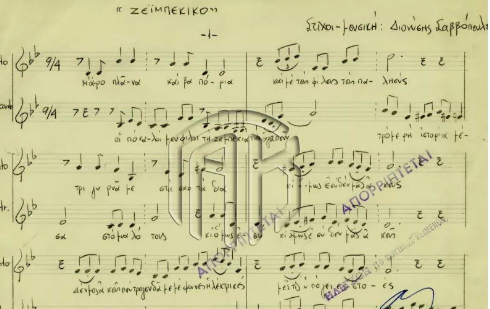Τιμώντας τον μεγάλο Διονύση Σαββόπουλο, ο οποίος έφυγε χθες, Τρίτη 21 Οκτωβρίου, από τη ζωή, σε ηλικία 81 ετών, τα Γενικά Αρχεία του Κράτους έδωσαν στη δημοσιότητα τις αποφάσεις λογοκρισίας της Χούντας για το τραγούδι «Ζεϊμπέκικο» (Με αεροπλάνα και βαπόρια) που είχε γράψει το1972 ο σπουδαίος καλλιτέχνης.