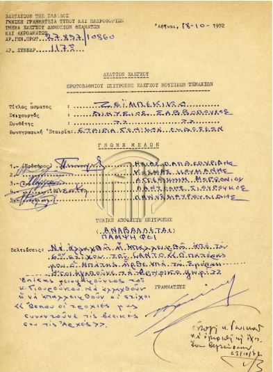 Στο αρχείο φαίνεται η σφραγίδα που μπήκε πάνω στην παρτιτούρα του κομματιού, η οποία γράφει «απορρίπτεται».