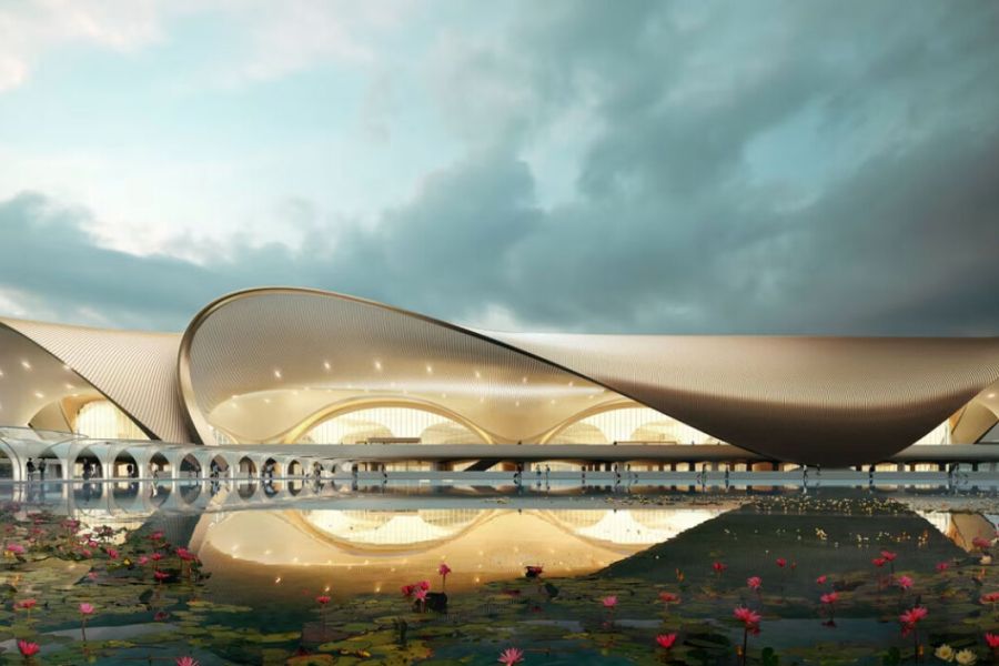 Το εμβληματικό σχέδιο του NMI φέρει την υπογραφή του αρχιτεκτονικού γραφείου Zaha Hadid Architects. Ο τερματικός σταθμός έχει σχήμα λωτού – σύμβολο καθαρότητας και ανθεκτικότητας στην ινδική παράδοση – ενώ η οροφή καλύπτεται από χρυσά πέταλα. Το εσωτερικό συνδυάζει περίτεχνα σχέδια με γυαλί και φυσικό φωτισμό, προσφέροντας μια πιο ήρεμη και μοντέρνα εμπειρία ταξιδιού.