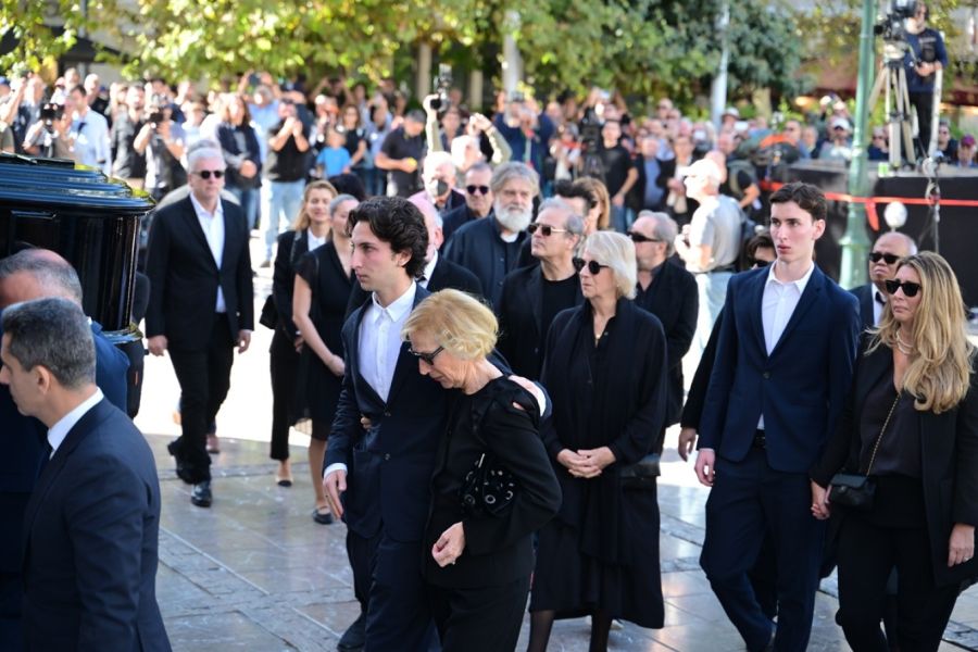 Δίπλα της βρίσκονταν τα παιδιά και τα εγγόνια του Διονύση Σαββόπουλου, σε ατμόσφαιρα βαριάς συγκίνησης.