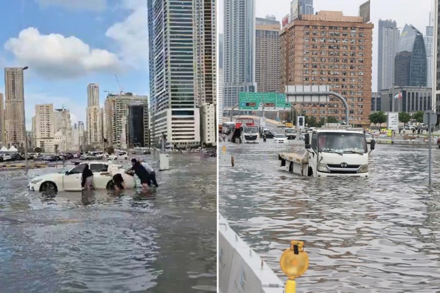 Στο εμιράτο της Σάρτζα πλημμύρισε μία από τις βασικές οδικές αρτηρίες και οι περαστικοί κυκλοφορούσαν χωρίς παπούτσια.