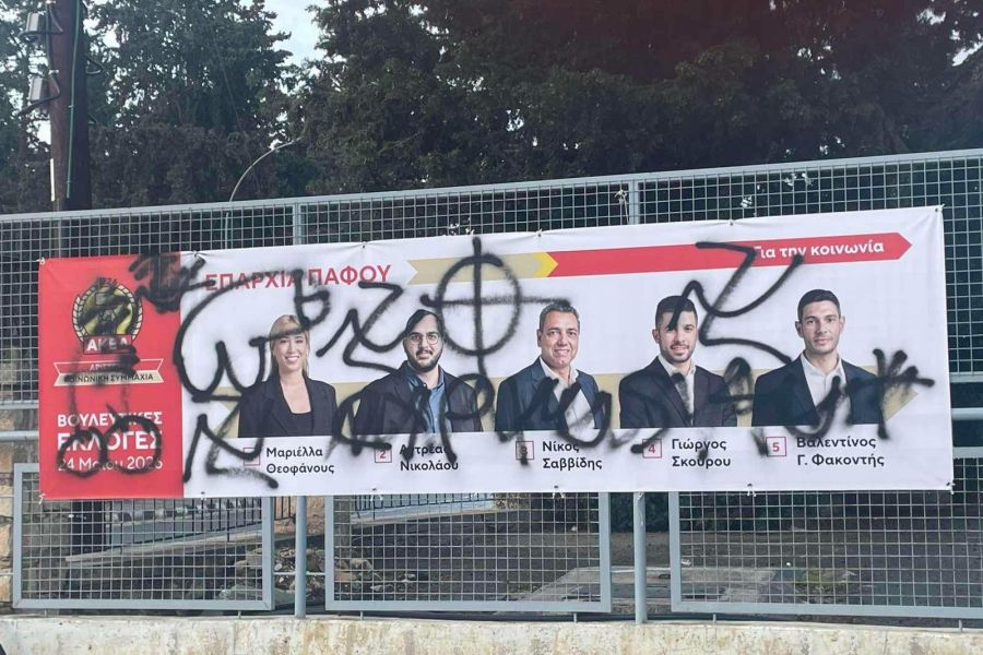 Έξαλλοι είναι στο ΑΚΕΛ Πάφου λόγω βανδαλισμού αφίσας με υποψήφίους του κόμματος.