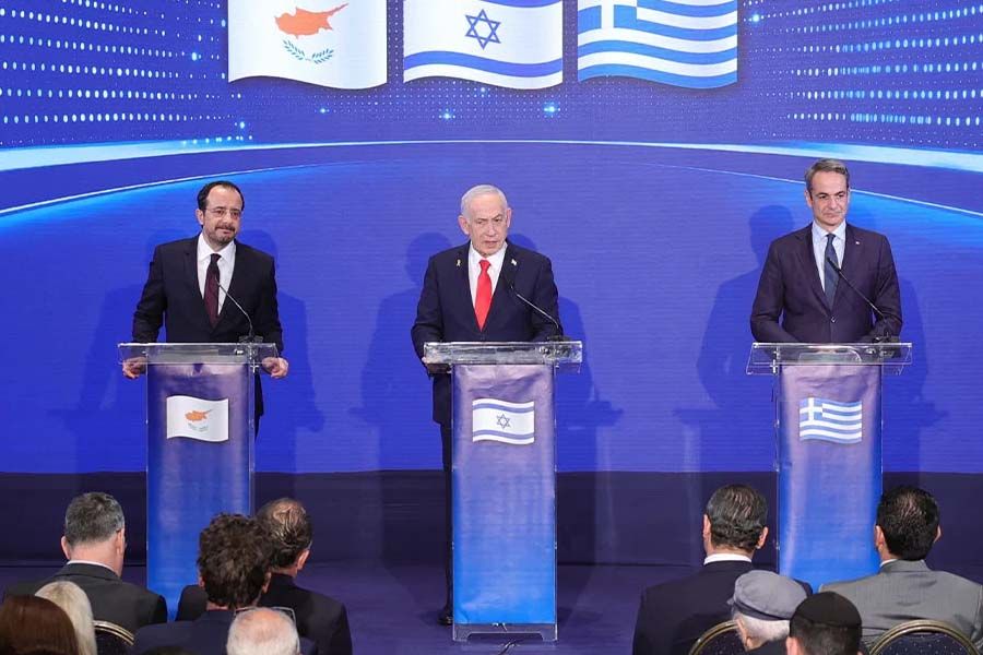 Ο Ισραηλινός Πρωθυπουργός Βενιαμίν Νετανιάχου, είπε στις δικές του δηλώσεις ότι, το Ισραήλ, η Ελλάδα και η Κύπρος είναι τρεις αρχαίες χώρες και ότι είναι πολύ περήφανες για την ιστορία τους, ενώ βλέπουν στο μέλλον. Έστειλε το μήνυμα, «σε όσους φαντάζονται ότι μπορούν να αποκαταστήσουν τις αυτοκρατορίες τους στη γη μας, λέω να το ξεχάσουν, μην το σκέφτονται καν». Αναφέρθηκε σε τρεις δημοκρατίες στην ανατολική Μεσόγειο, οι οποίες θα εργαστούν για να φέρουν ένα καλύτερο και λαμπρότερο μέλλον, ευημερία και ειρήνη μέσω της ισχύος.