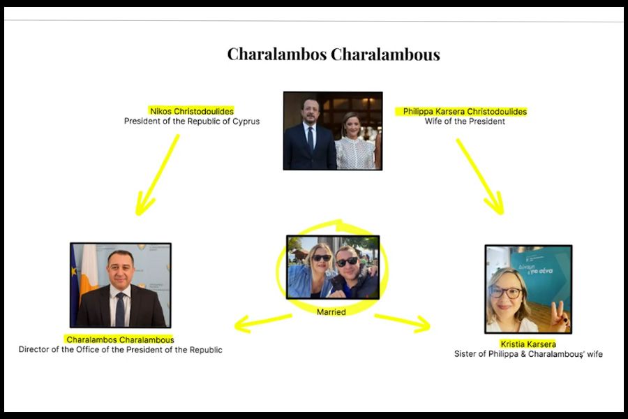 Αναφορές γίνονται και στην Πρώτη κυρία Φιλίππα Καρσερά Χριστοδουλίδη για χορηγίες σε φιλανθρωπικές της δραστηριότητες.