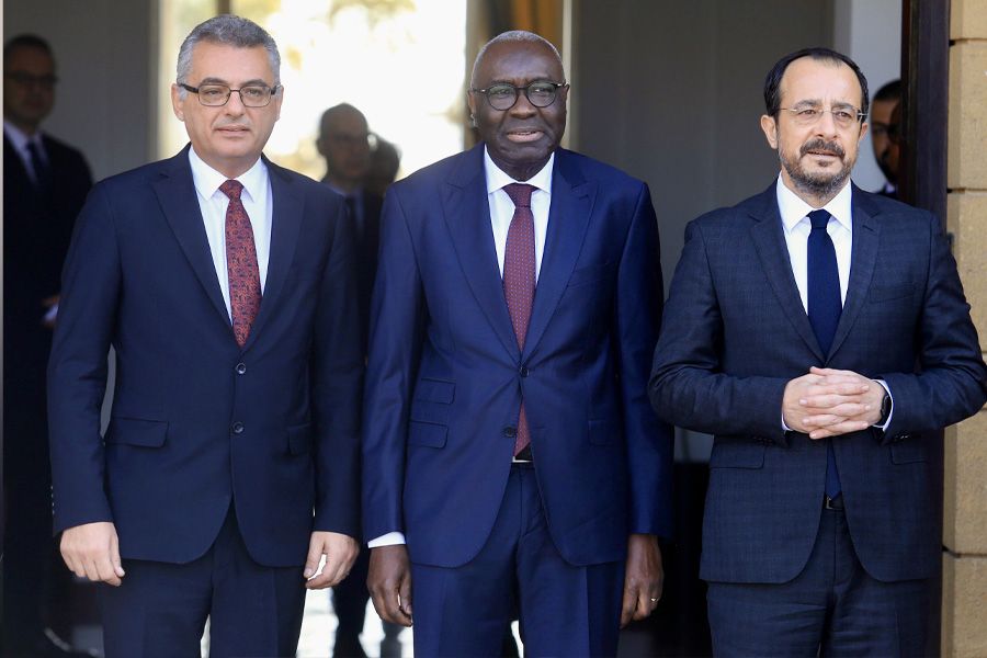 Πρώτος στον χώρο της συνάντηση αφίχθη ο Πρόεδρος Χριστοδουλίδης, συνοδευόμενος από τον διαπραγματευτή Μενέλαο Μενελάου.
