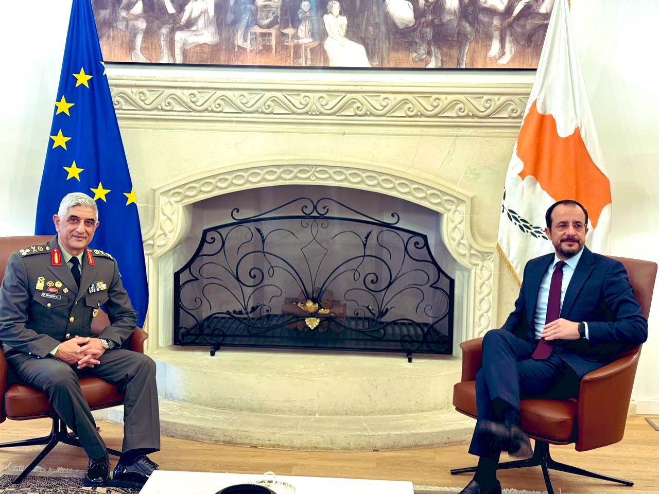 Καλωσορίζοντας στην Κύπρο το νέο αρχηγό της ΕΦ, ο Πρόεδρος Χριστοδουλίδης είπε ότι «αναλαμβάνει τα πολύ απαιτητικά καθήκοντα που είναι άρρηκτα συνδεδεμένα με τη διαφύλαξη του ύψιστου αγαθού της ασφάλειας και την προάσπιση της ανεξαρτησίας, της κυριαρχίας και της εδαφικής ακεραιότητας της Κυπριακής Δημοκρατίας».