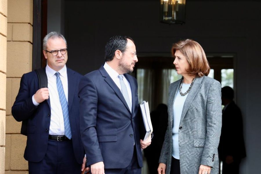 Επιβεβαίωση της βάσης λύσης του Κυπριακού, καταγραφή των συγκλίσεων για την εσωτερική και την εξωτερική πτυχή από τα ΗΕ, σύγκληση επίσημης διευρυμένης διάσκεψης στη βάση των συγκλίσεων, επανέναρξη των συνομιλιών και ανακοίνωση εκεί της διάνοιξης 4 νέων σημείων διέλευσης περιλαμβάνει η πρόταση 5 σημείων που κατέθεσε στην σημερινή συνάντηση των δύο ηγετών με την Προσωπική Απεσταλμένη του ΓΓ του ΟΗΕ, Μαρία Άνχελα Ολγκίν, ο Πρόεδρος της Δημοκρατίας, Νίκος Χριστοδουλίδης.
